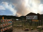 Day 11. This was the view from Gate 1. Smoke plumes were visible behind the Western Ridge Restaurant and National Guard personnel were on patrol. We were informed by the Guardsman that power had been shut off to the restaurant and throughout Filings 9-11 today (6/19/2012) because of another spot fire that jumped the Poudre River at Sheep Mountain, just south of GVM.