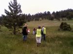 4/12/2012 Jim E sent this information along with photos, thanks Jim! “Yesterday I happened to be walking along a game trail here in Glacier View Meadows and spotted a fairly newly wind-thrown ponderosa. As I’d seen easily accessible branch tips nibbled on along Haystack Rd sometime ago, and didn’t know what did it, this seemed to clinch deer as the cause. The roots are extremely shallow as shown here. The trunk leading off to the left. Here’s the top of the tree showing easily reached – by deer – relatively palatable needles and branch tips.” Jim observed about a dozen piles of deer scat around the tree suggesting that deer are the culprits. He has sent an email to Mark from the Division of Wildlife to ask about mule deer forage habits.