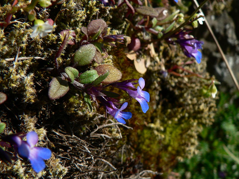 My eye first caught the bright green of a moss, likely Tortula ruralis. But then the extremely tiny bloom of the above, the basal leaves tinged in purple, unmistakable. Weber and Wittmann (2001) say “Very common but inconspicuous and delicate annual, blossoming very early at low altitudes. … Leaves usually strongly purplish-tinged.