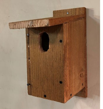 If you put out nesting boxes in previous years, you should remove the material and scrub the inside with a mild detergent and water. The right-side panel swivels out at the bottom. Houses previously occupied by Bluebirds will have the box filled with materials nearly up to the bottom of the hole. If you clean out the materials, new mammas will move in to the old boxes.