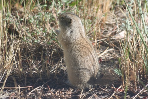 Yellow bellied marmots (also called rock chucks and whistle pigs) occur in rock outcrops and sometimes road culverts. They are best viewed at a distance and can be pestiferous. They can harm your pets so be forewarned. Their alarm calls are distinctive. This fact sheet discusses their use of the calls: Marmot Calls.